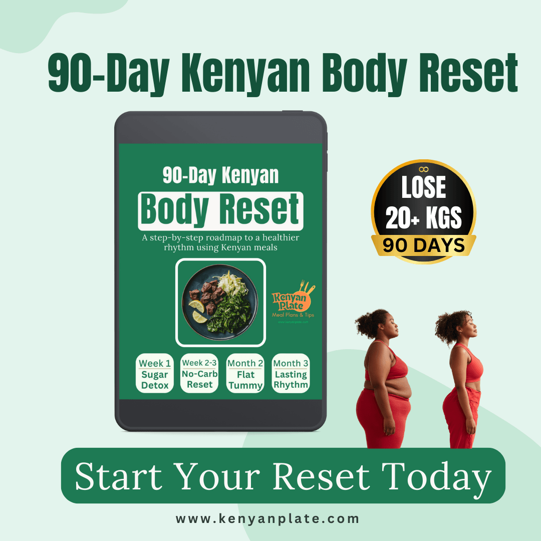 This easy-to-follow Kenyan challenge gives you a clear 21-day plan with meals, quick recipes, eating-out scripts, simple home exercises and daily tracking — all with local ingredients.