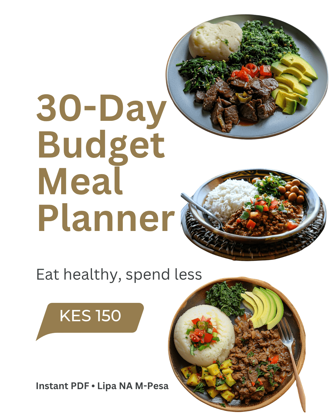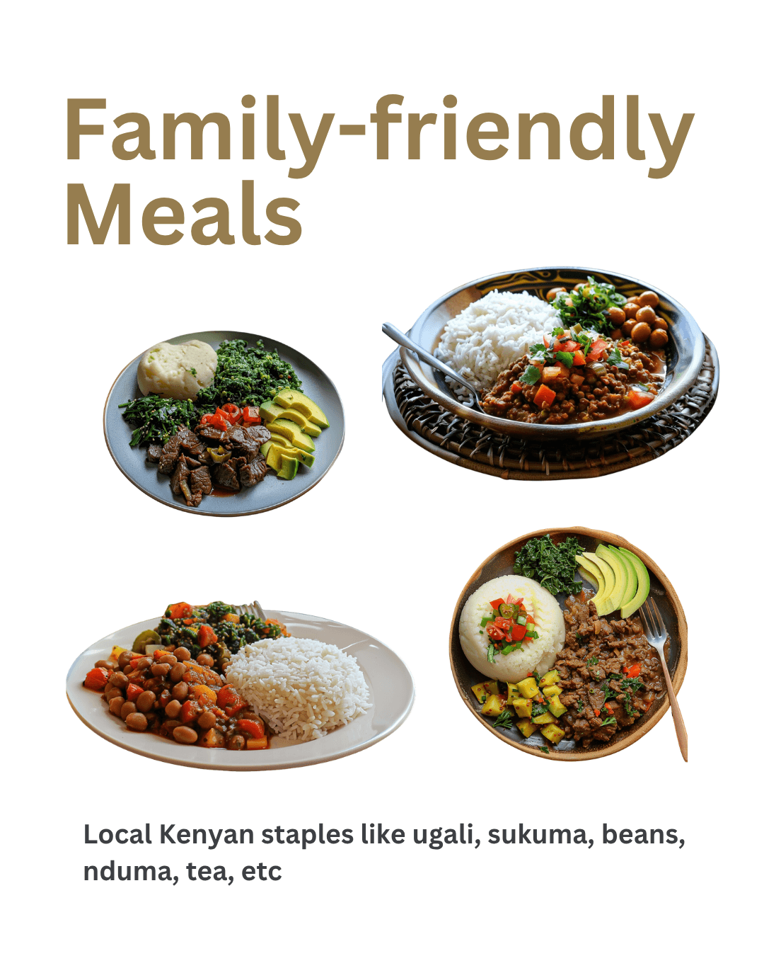 ✔️ Built around affordable Kenyan staples like ugali, beans, ndengu, sukuma wiki, sweet potatoes, nduma, cabbage, and rice.
